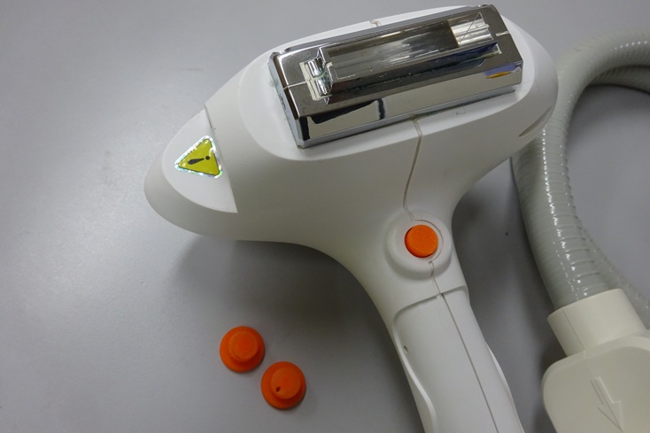 業務用脱毛機ライエンスⅡのハンドピースをランプ交換にお預かり致しました。