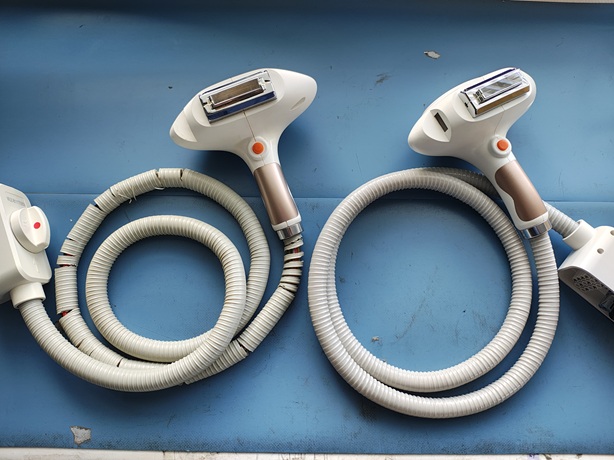 業務用脱毛機ライエンスⅡのハンドピースを別々のサロン様からランプ交換にお預かり致しました。